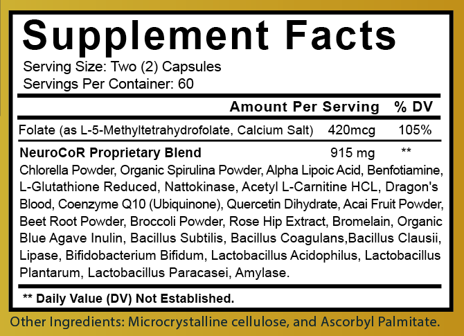 NeuroCōR™ combines key nutrients, botanicals and antioxidants that may support nerve health, cognitive function, aids in GI health and cellular protection.*